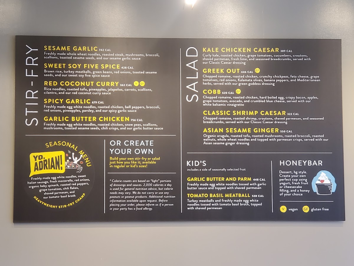 Located at 1309 Dock St in Baltimore, honeygrow offers a unique culinary experience that emphasizes fresh, wholesome ingredients. The menu highlights individually packaged stir-fries, featuring delectable options like the Spicy Garlic with egg white noodles, roasted chicken, and vibrant vegetables, all tossed in a bold spicy garlic sauce. Alternatively, the Garlic Butter Chicken delights with its rich garlic butter flavor perfectly complementing the tender chicken and fragrant snow peas.